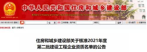 住建部公布2021年第二批建設(shè)工程企業(yè)資質(zhì)名單
