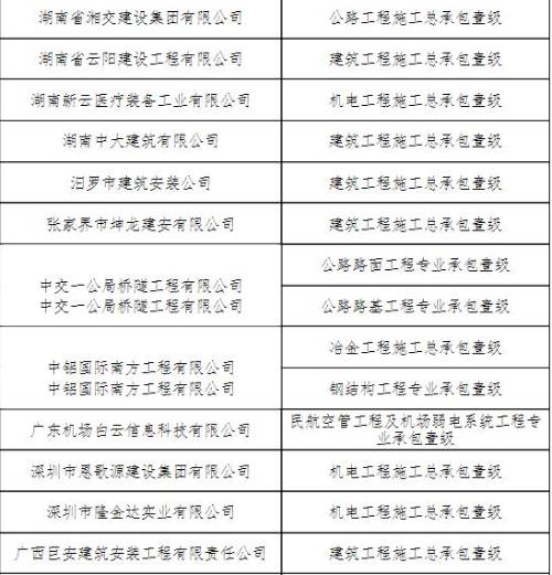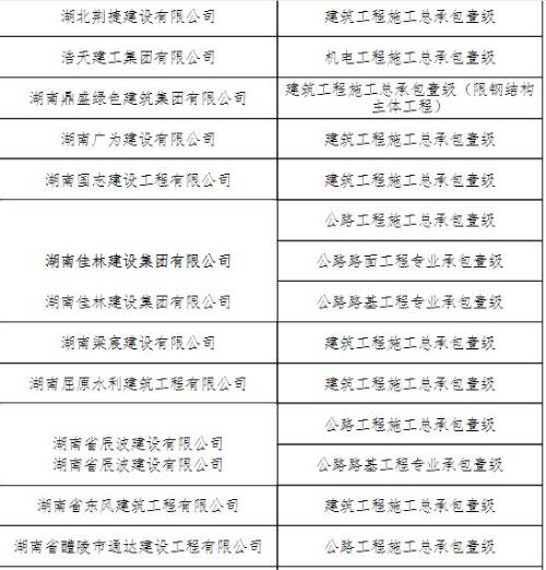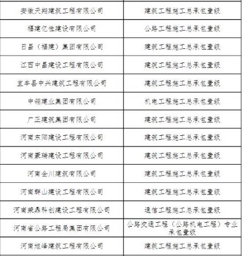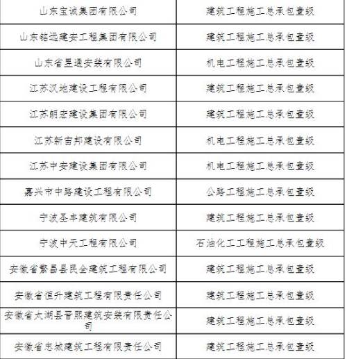 建筑業(yè)企業(yè)資質(zhì)部分名單如下: