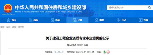 按照《行政許可法》及有關(guān)建設(shè)工程企業(yè)資質(zhì)管理規(guī)定,我部對近期申請建設(shè)工程企業(yè)資質(zhì)的申報材料組織了專家審查,現(xiàn)將專家審查意見在住房城鄉(xiāng)建設(shè)部門戶網(wǎng)站(https://www.mohurd.gov.cn)予以公示,以廣泛接受社會監(jiān)督。企業(yè)申報材料中的人員、代表工程業(yè)績等詳細情況,可通過點擊“住房城鄉(xiāng)建設(shè)部門戶網(wǎng)站→建設(shè)工程企業(yè)資質(zhì)行政審批專欄→資質(zhì)申報基本信息公示”進行查詢。