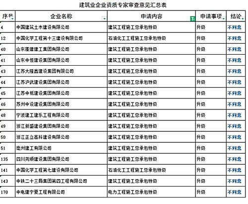 12月1日,住建部公布了新一批建設(shè)工程企業(yè)資質(zhì)專家審查意見,其中,這16家申請?zhí)丶壻Y質(zhì),全部不同意!